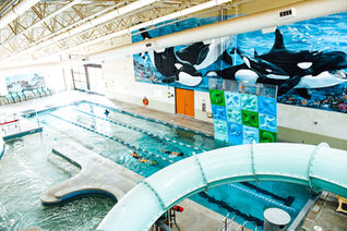 It features an indoor pool perfect for year-round swimming, complete with a lap pool for serious swimmers and a leisure pool for families and casual swimmers. The center also boasts a thrilling water slide and diving board for the more daring swimmers.